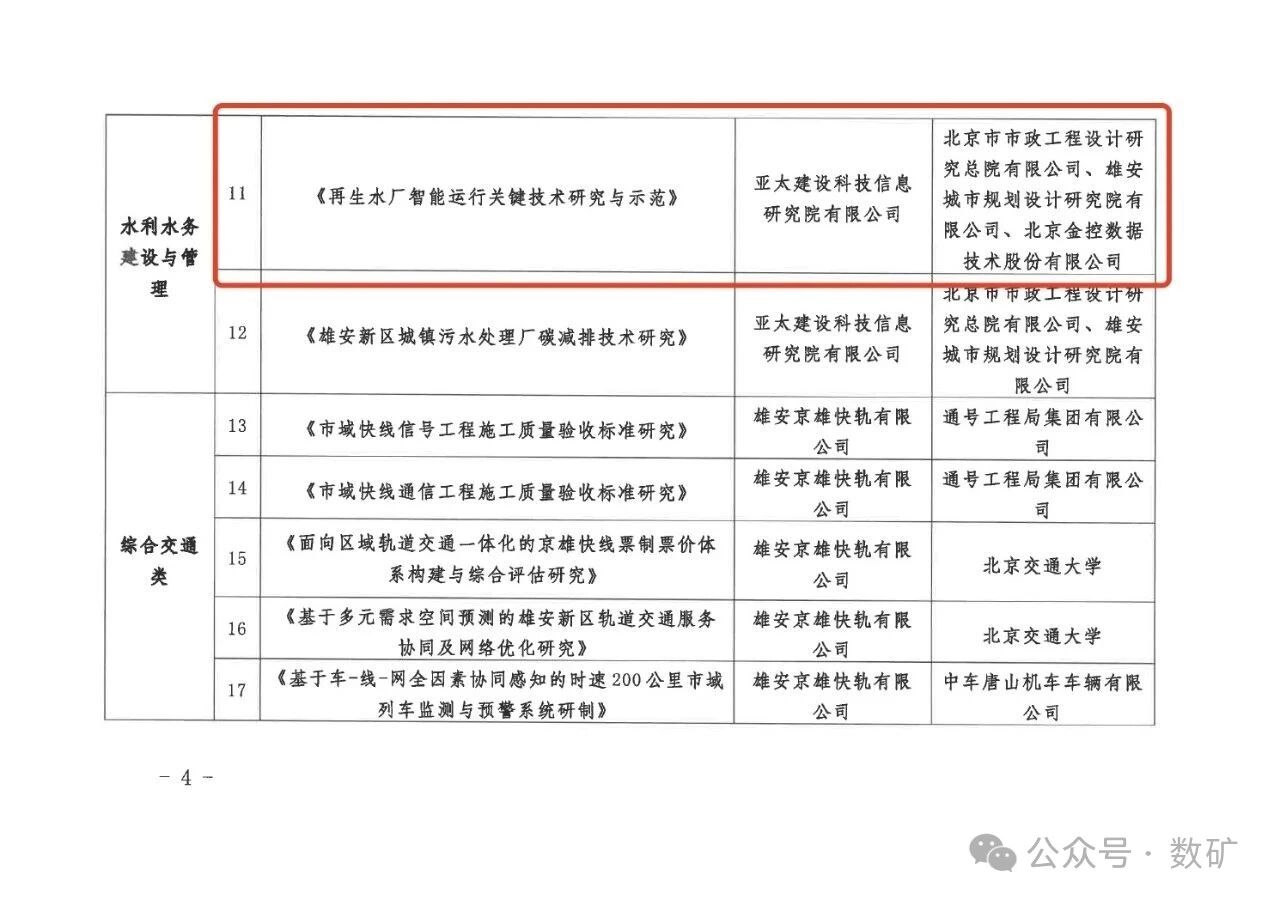 近日,河北雄安新區(qū)建設(shè)和交通管理局正式下達(dá)《2025年雄安新區(qū)建設(shè)科技計(jì)劃項(xiàng)目的通知》。金控?cái)?shù)據(jù)作為核心合作單位,榮幸參與其中“水利水務(wù)建設(shè)與管理”領(lǐng)域的重點(diǎn)項(xiàng)目——《再生水廠(chǎng)智能運(yùn)行關(guān)鍵技術(shù)研究與示范》。