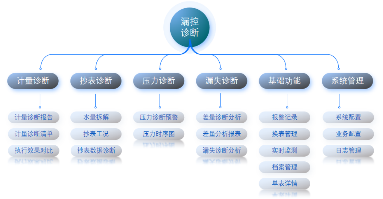 產(chǎn)品核心功能包括:計(jì)量診斷、抄表診斷、壓力診斷、漏失診斷等??梢匀轿粠椭蛻魪谋碛^漏損、物理漏損、管理漏損三位一體全面診斷漏損的問題。