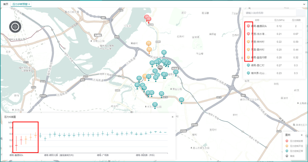 系統(tǒng)對(duì)管網(wǎng)壓力健康度進(jìn)行細(xì)致評(píng)估,并利用壓力與流量數(shù)據(jù)的綜合分析,以圖形化方式高亮異常情況。揭示管網(wǎng)數(shù)據(jù)背后的潛在問題,包括水盜取、管網(wǎng)破損、爆管等,為供水企業(yè)提供清晰的診斷視圖,促進(jìn)快速識(shí)別并處理管網(wǎng)隱患。